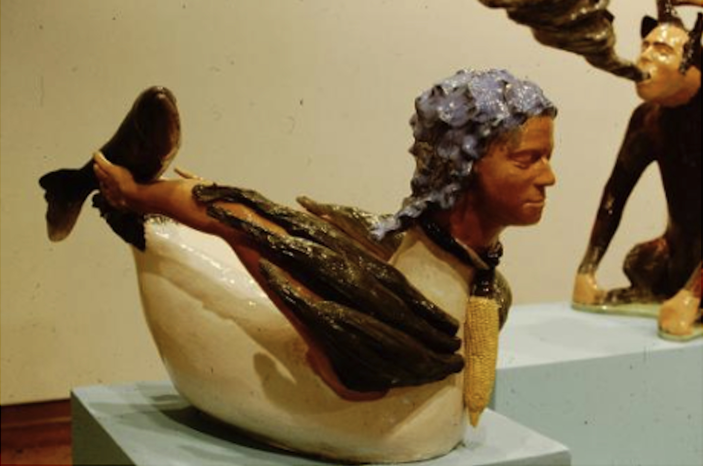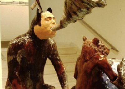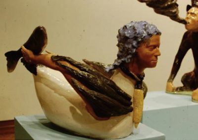 I have always been fascinated with the idea of clay as a skin of material that can express the spirit of what it might hold. This show of skin spirits was a series of portraits of people I knew who could be expressed this way. For example “Pack-Saddle-Dad” was a portrait of my father who taught mule packing in WW II but by age 75 was still saddled with the mans burden of doing very little for himself and so much for others. The other images here are either portraits of people or places as “skins” or a “possible representation. There is a long tradition of this in ceramics, the Moche pottery of ancient Peru comes to mind and something I have looked at a lot.